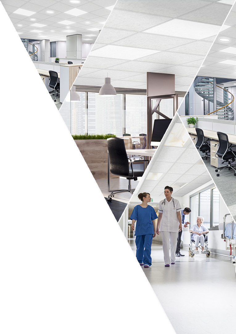 I nostri sistemi per soffitto sono un modo semplice e veloce per organizzare spazi belli e confortevoli. Semplici da installare e di lunga durata, proteggono le persone dal rumore e dalla diffusione del fuoco, apportano un contributo costruttivo per un futuro sostenibile.